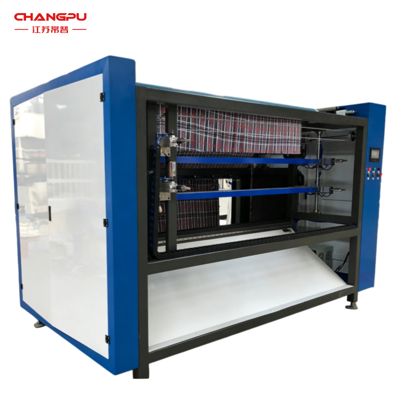 本机集分切、横切功能于一体,加工高效精准。主要用于生产毛巾和抹布等产品。设备结构坚固,运行高速稳定、耐用性强;裁切速度快、产能高,布料切口平整无毛边,送料均匀保障切割质量。支持定制,可做直边、锯齿边等多种款式,分切宽度最小 100mm 且灵活可调,适配不同规格。